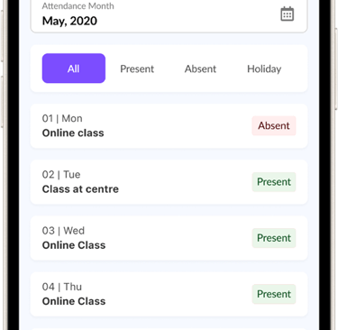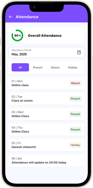 Attendance is crucial for students, requiring 75% to sit for exams. Previously, teachers marked attendance in the app for in-campus classes.