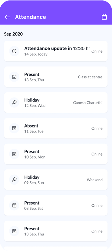87% of students are unsure about their attendance status for online vs. offline classes due to unclear UI in the app.