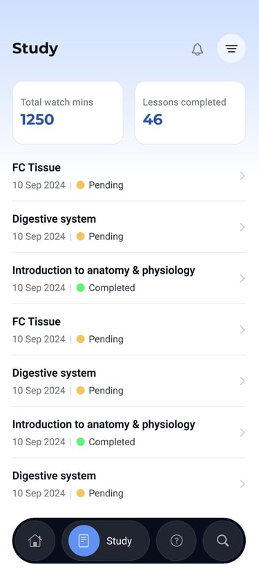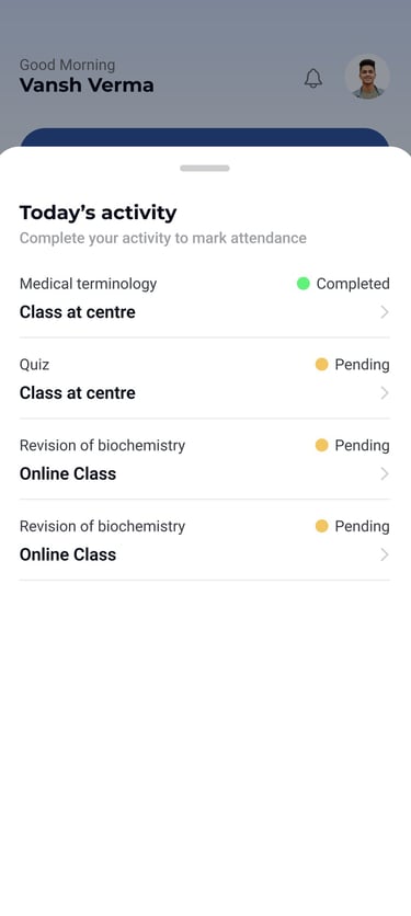 App for virohan students to learn from class track attendance, get certified, and connect for help etc